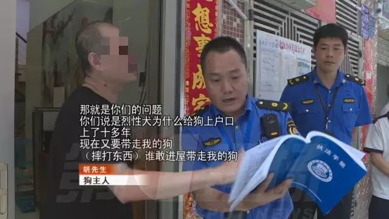 在对狗进行暂扣,还是狗主人自行处理的问题上,双方各不让步。胡先生的儿子打电话过来,事情出现了转机。同意执法人员把狗带走,但胡先生必须全程陪同,观察狗在暂扣期间是否受到了正常对待。