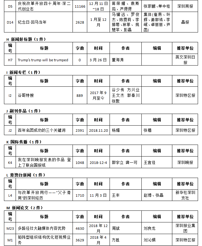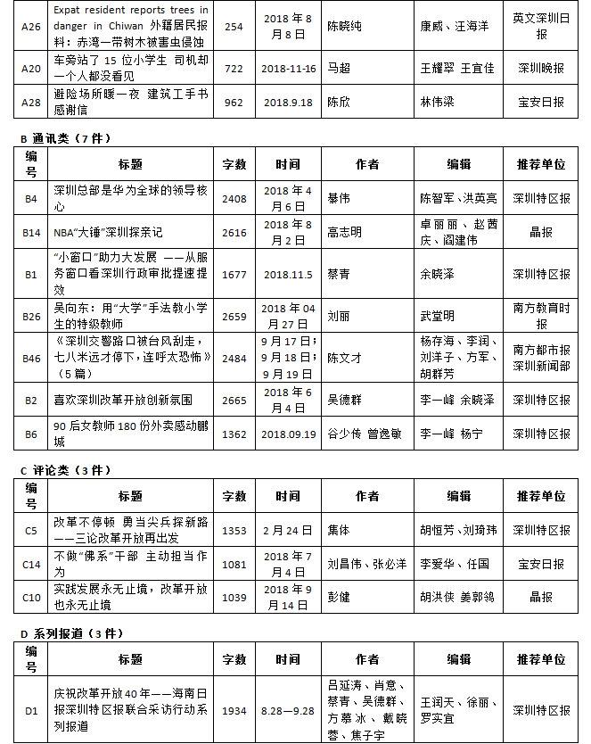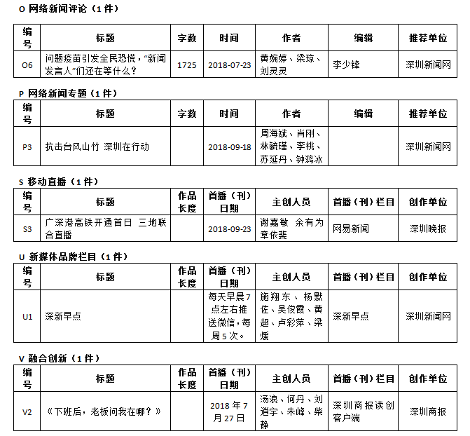 第26届(2018年度)深圳新闻奖获奖作品目录