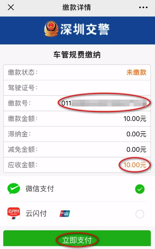 03 提交缴费后,核对缴款号(前面会多01),应收金额为10元。缴费后再次查询该流水,状态为“核销中”(即缴费成功)。