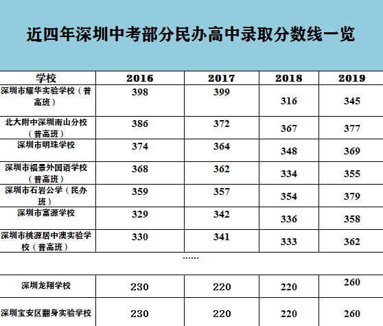 深圳绝大多学校的分数线相对去年普涨10-20分。