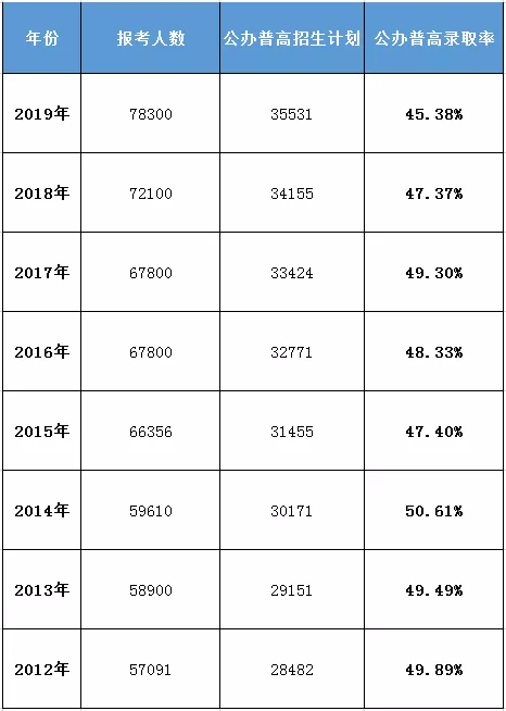 针对网友抱怨的,公办普高的录取率问题,小编手工统计了近8年来的普高招生计划,部分数据可能有出入,仅供参考。