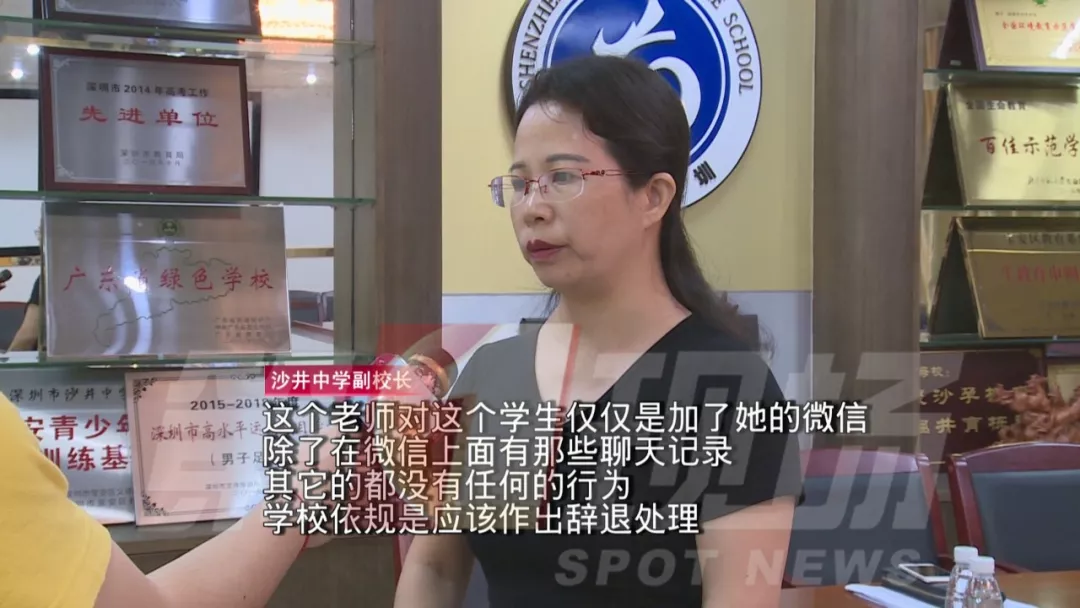 为详细了解实际情况,记者来到了李先生女儿就读的沙井中学,学校的副校长出面回应称,李先生反映的老师骚扰他女儿的情况确实存在,当事人属于临聘教师,去年9月到该校任教,目前已经被校方开除。