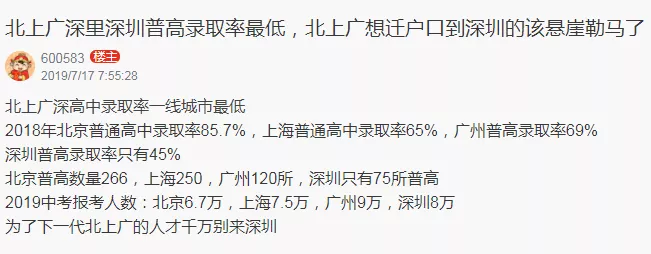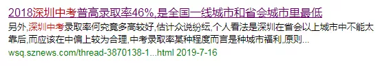 “家在深圳”论坛也有网友爆料,北上广深四个一线城市里,数深圳的普高录取率最低。