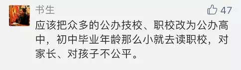 有网友表示:十四五岁的孩子行知尚未成熟,未成年少年无法在中考结束后就确定职业,职业学校应该在高中学业结束后满18岁的孩子再考虑。中学阶段搞职业教育有点操之过急。
