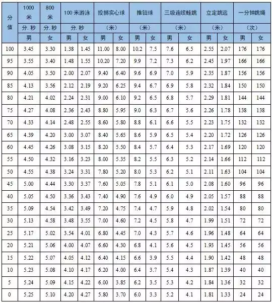 再比如女子800米,北京满分是3分24秒,深圳满分是3分06秒,足足多了18秒。小编贴出北京上海广州深圳的中考体育成绩标准数据图,各位自行感受一下: