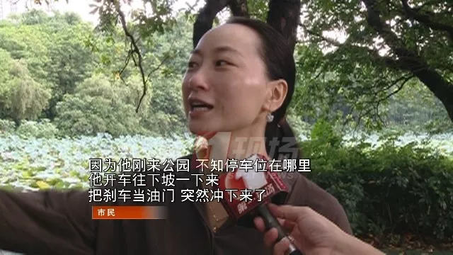 现场目击者称,当时这辆车开进了公园后四处寻找停车位,而在开到下坡路的时候,司机疑似错把油门当刹车,沿着人行道直接冲了下来。