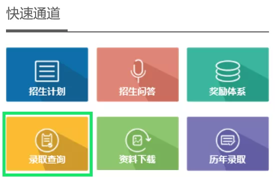 滚动鼠标下拉找到位于页面右侧的快速通道,点击“录取查询”。
