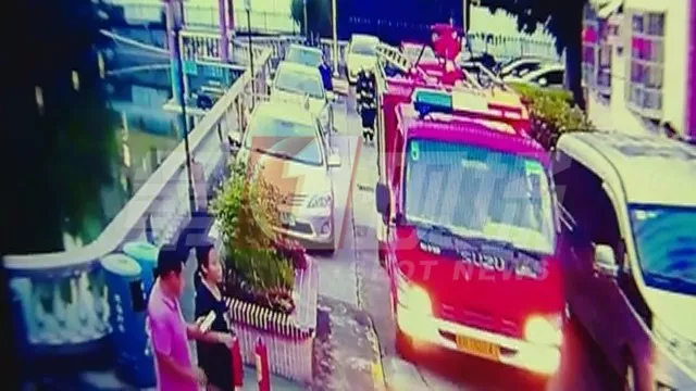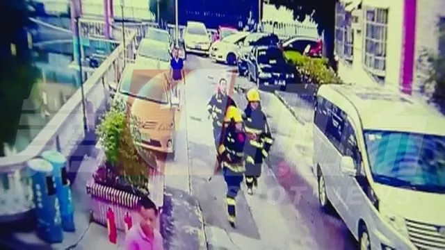 21日晚宝安一小区突然起火,消防人员出动,却因消防通道停满车 使消防车被堵火场外