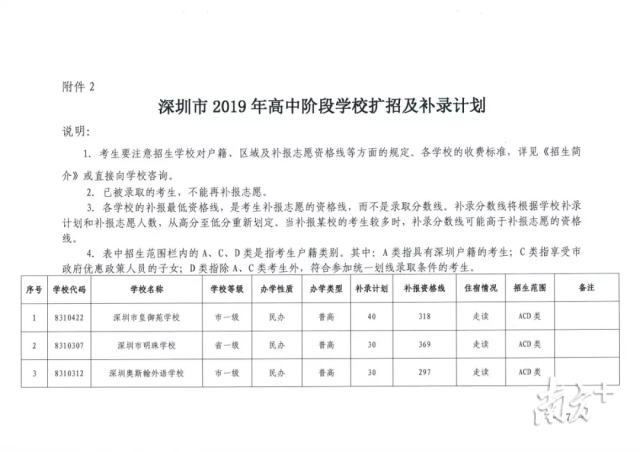 记者梳理发现,目前,深圳市共有16所普高尚有扩招及补录计划,补录人数2430人,最高补录分数线为377分。此外,全市还有4所中职学校与7所中技学校进行扩招与补录,补录人数共1367人,最高补录分数线为316分。
