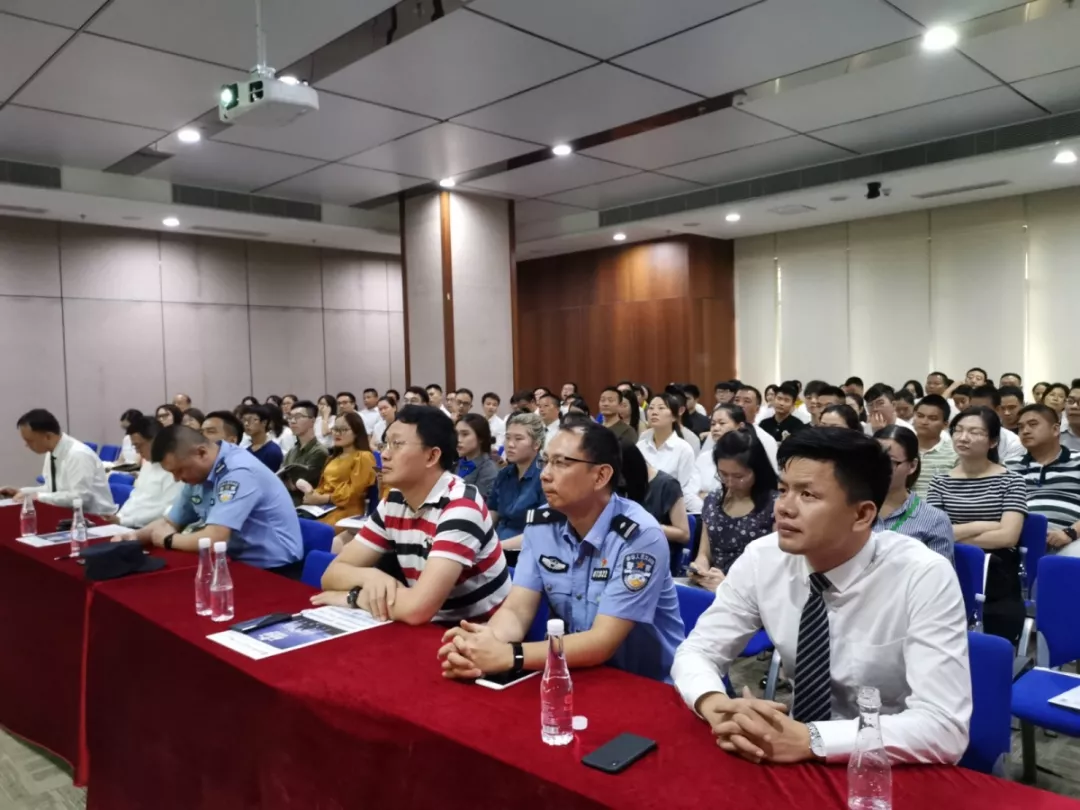 7月29日,福田区反诈骗教育学院第36场公开课走进泰然大厦,天安数码城园区中近300家企业、近800位员工参与了此次课程。课程主要由福田区反诈民警讲师莫基锋警官进行讲解,莫警官根据园区内企业财务人员较多的特点着重解析财务人员如何防骗及骗后如何补救。会后,近50家企业向蓝马甲宣传队员登记,希望反诈周刊能定期送到企业,供员工及客户阅读,一起为反诈出力。