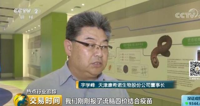 天津康希诺生物股份公司董事长宇学峰:我们刚刚报了流脑四价结合疫苗,国外有两家企业在做这个产品,我们是世界上第三家做这个产品的,是中国第一家报了新药的。