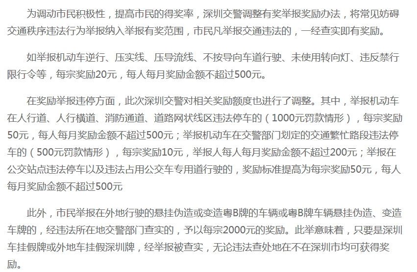 交警蜀黍会视情况给你奖金的!因为自7月29日起,深圳所有交通违法都可有奖举报啦