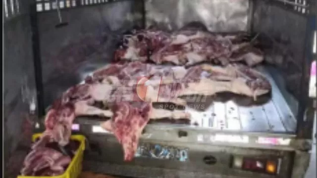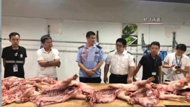 然后就看到了满桌未经检验检疫的臭猪肉(共1600公斤)