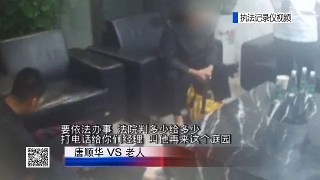 有两位老人正在“大闹”办公大楼