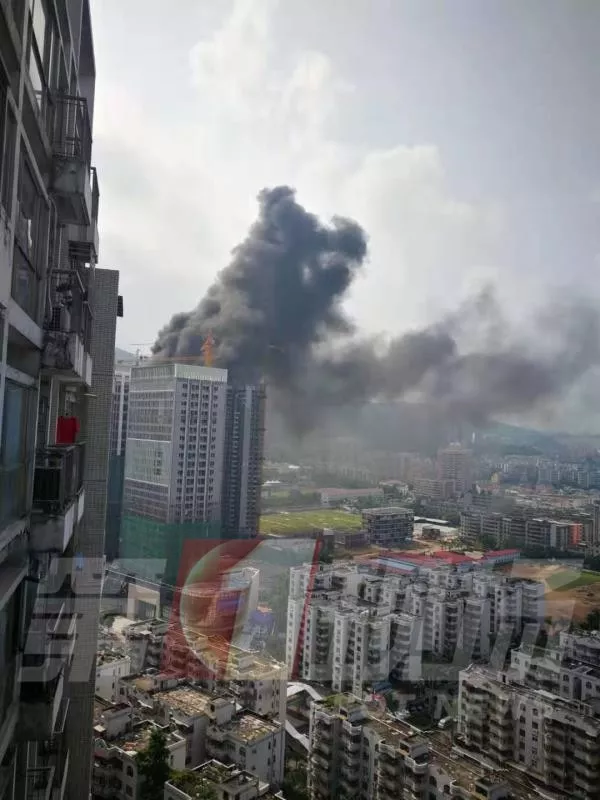 龙岗布吉一在建楼盘突发起火,蹿起数十米高黑烟(图)