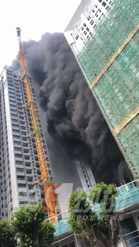 目击市民表示,在布吉德兴花园西侧的一个在建楼盘工地里,疑似发生火情。现场冒出大量黑烟,升起的高度超过了一旁三十多层高的楼盘。