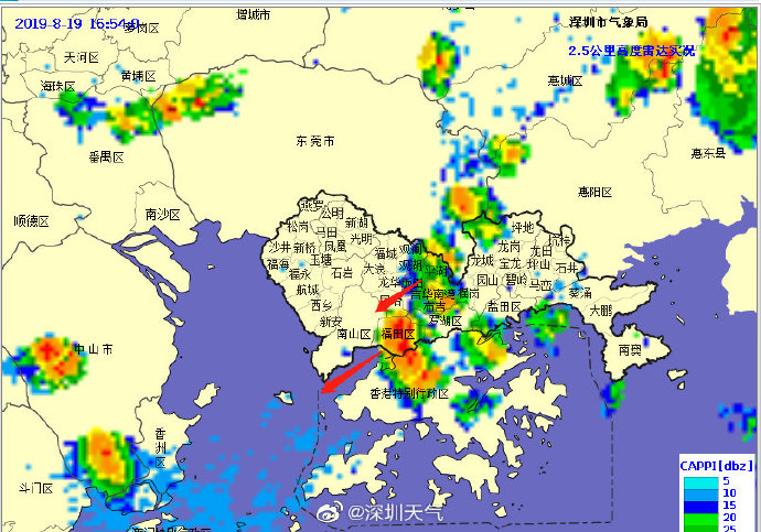 目前中部地区已下起雷雨,主要是福田、龙华、横岗西部地区,后续将影响南山、宝安南部地区。