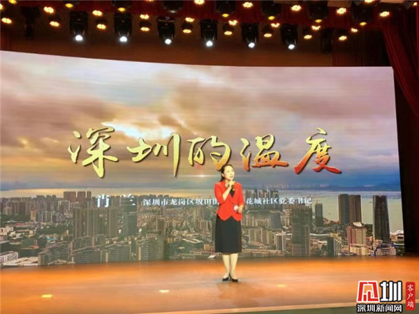 演讲中,肖兰从自身经历出发,结合工作实际,讲述了自己在坂田街道社区书记岗位中,急群众之所及,思群众之所需,不断探索实践。从筹建社区党群服务中心、开办深圳第1个小候鸟夏令营、筹建全国首家社区基金会,到推出“夕阳红”养老项目,从群众具体到老人、孩子群体,肖兰围绕《深圳的温度》主题,透过一个个社区工作案例,讲述来自深圳的人文关怀与充满人性化的温暖。