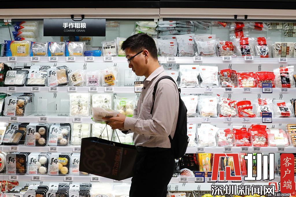 生鲜超市的冷柜前,一位市民正在选购商品