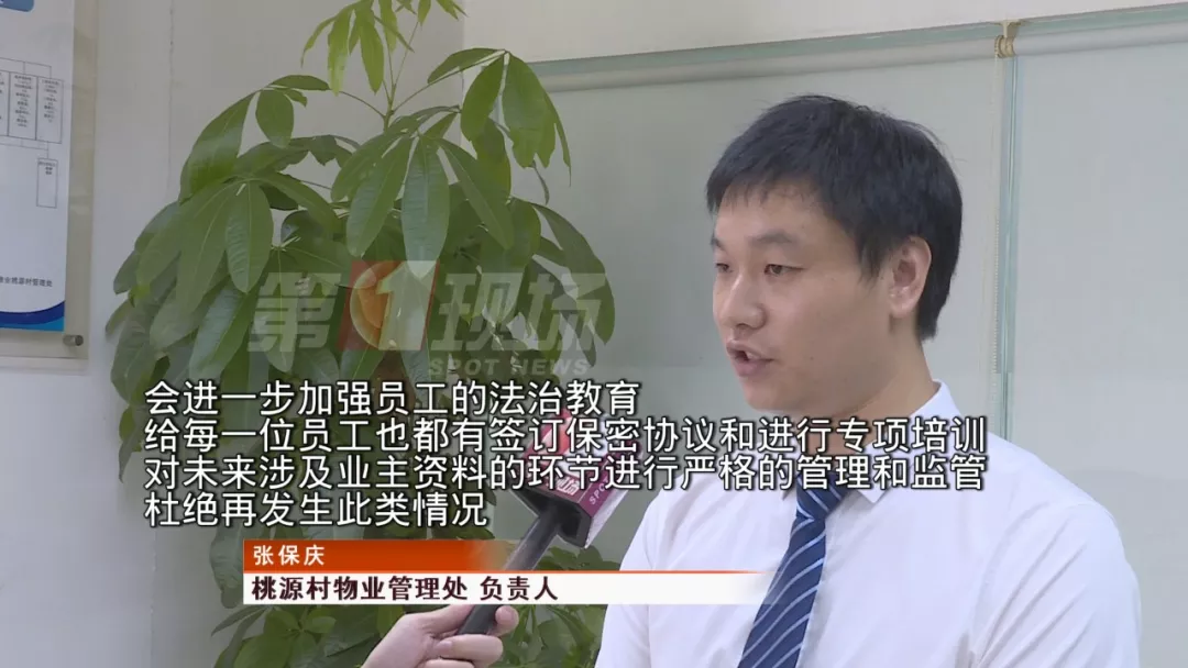 今天记者来到桃源小区物业管理处,负责人介绍称在今年6月确实有两名员工在工作期间被警方带走,在事情发生后公司才得知两名员工涉嫌泄漏业主个人资料。