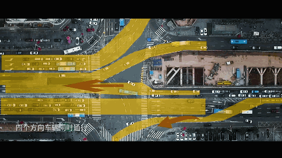 移位左转即通过将左转车道渠化转移设置,重组道路断面,来实现相对方向直行和左转同时放行,从而减少信号相位,提升整个路口通行效率。