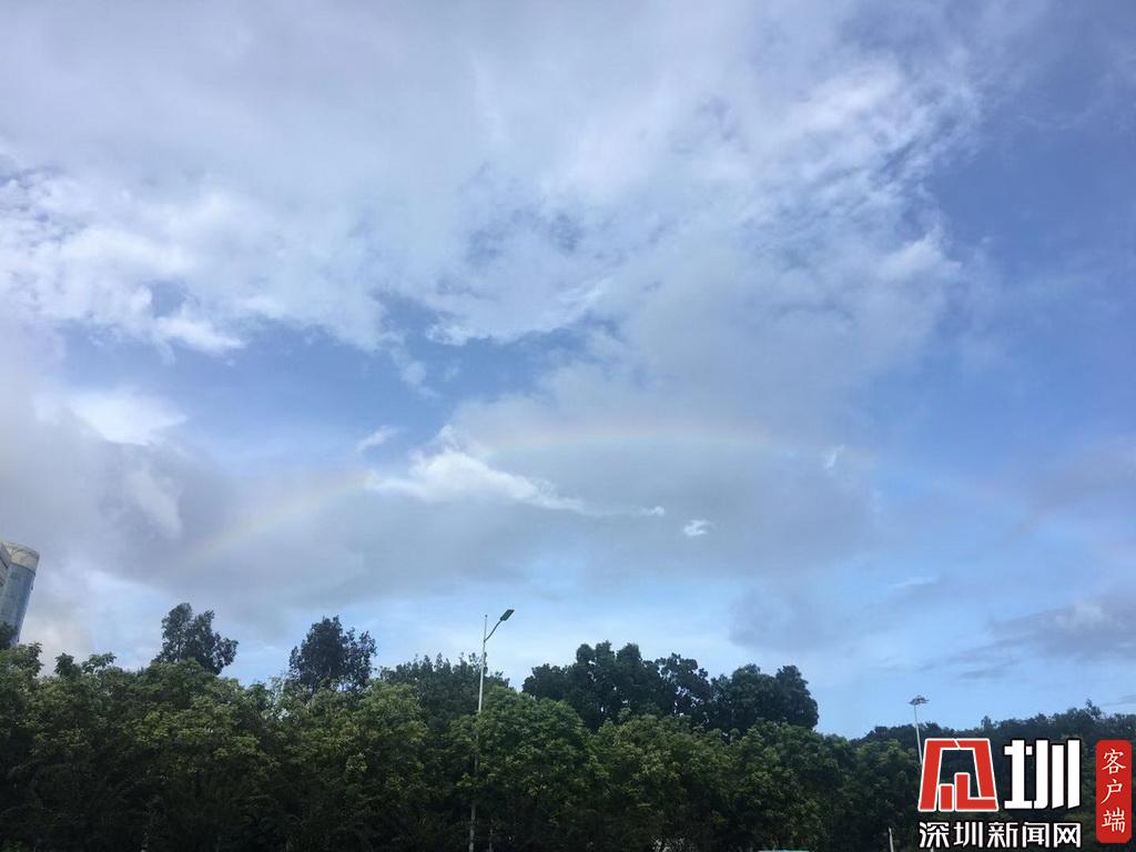 2019年8月29日讯(记者 刘婷)今天17点30时许,雨后的深圳惊现彩虹,似张“弯弓”横跨天际。