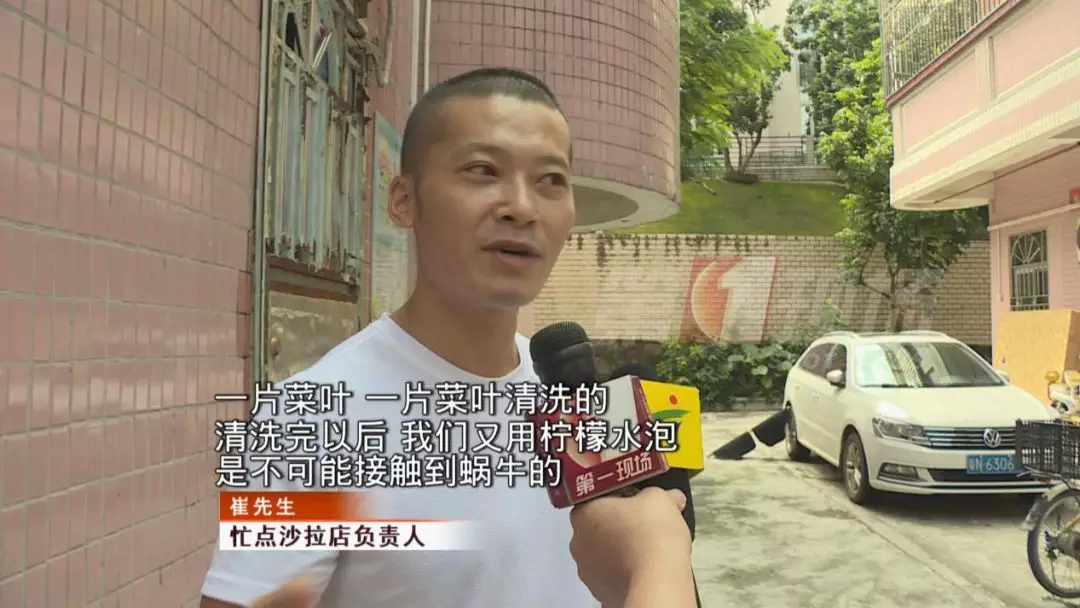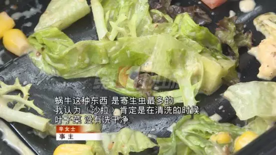 今天上午,辛女士也向记者展示了那份吃剩的沙拉,蜗牛依旧在蔬菜里头蠕动。辛女士认为,一定是蔬菜没有彻底清洗干净,才会出现这样的情况。