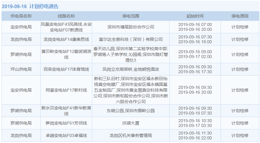 据中国南方电网最新消息,9月13日起至9月20日,深圳这部分地区要停电了!此前,晶报APP还报道了8月27日至9月12日深圳停电的情况:(8月27日至9月12日,深圳这些地方停电!快看影响你家没),快来看看有没有你家的吧。