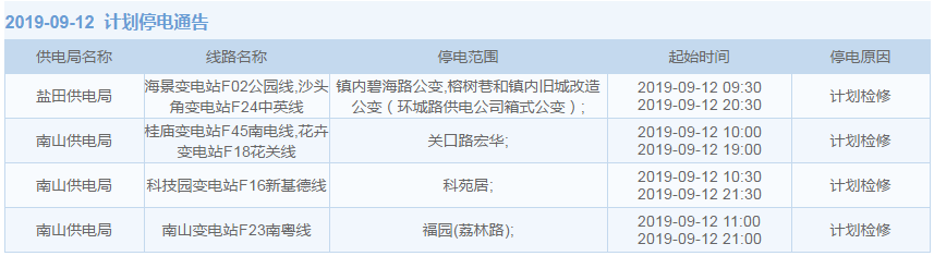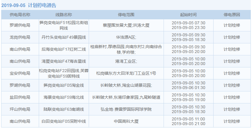 ■温馨提示:根据此前报道,5日起至12日,深圳要停电的地区如下: