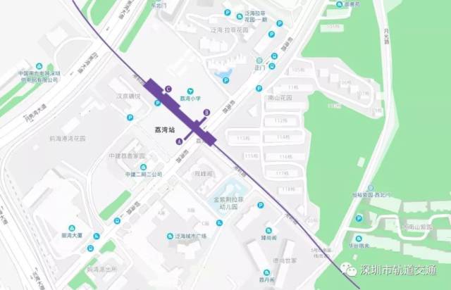 其中,A出入口位于车站南侧沿前海路布置,B出入口位于车站北侧沿前海路布置,C出入口位于车站北侧、荔湾站小学门口。