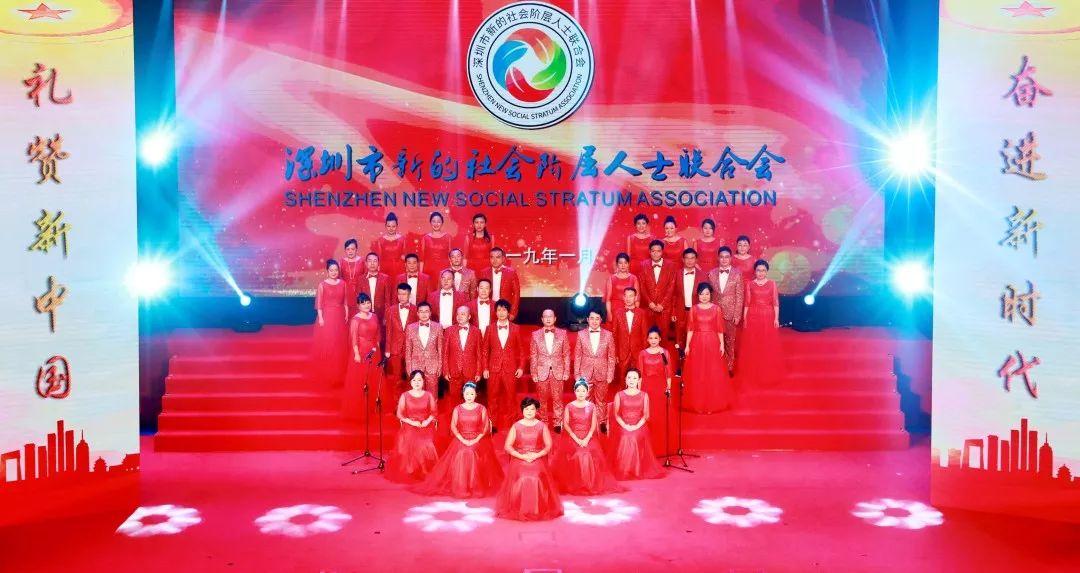 演出前,深圳市新的社会阶层人士同心艺术团揭牌。本次文艺汇演是在市委统战部指导下,以及各区统战部门支持下,由市新联会牵头,联合各区新联会共同举办的献礼新中国成立70周年庆祝活动之一。现场气氛喜庆温馨,通过网络直播的方式和场外新的社会阶层人士和十多万名观众互动。