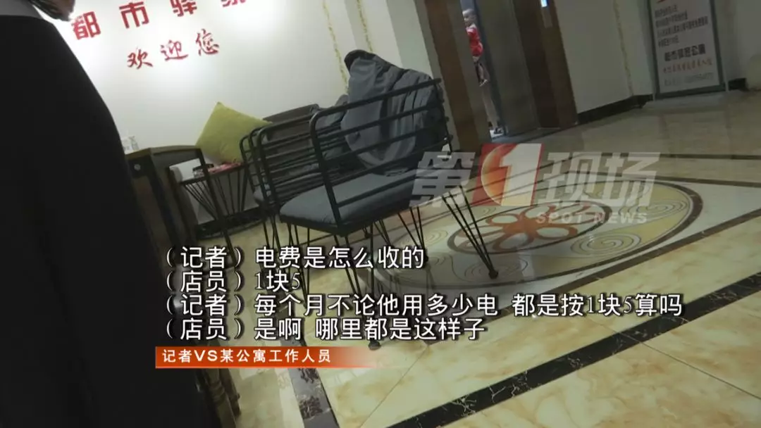 在记者走访的另外一家改造公寓,提及电价收费问题,门店的工作人员也很直白,他们有自己的统一价,无论用多少度电,都是按1块5一度电计算。