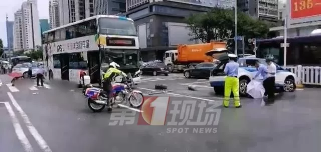 与一辆双层大巴和一辆私家车发生碰撞