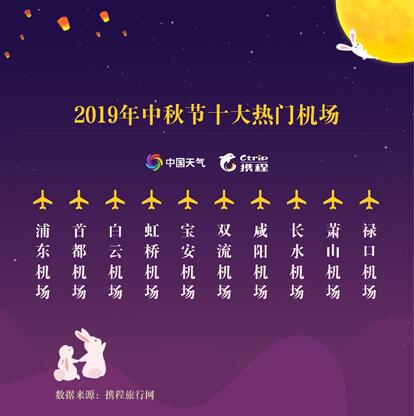 出行方式上,人们长线出行首选飞机。今年中秋节期间,浦东机场、首都机场、白云机场、虹桥机场、宝安机场、双流机场、咸阳机场、长水机场、萧山机场以及禄口机场是十大热门机场。