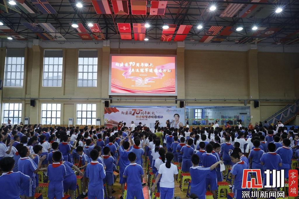 见圳客户端·深圳新闻网2019年9月12日讯(见圳客户端、深圳新闻网记者 金洪竹 杨浩翰)与奥运会世界冠军现场互动,学习体操基本知识,聆听冠军背后的成长故事……9月12日上午,由龙华区政府、龙华区文化广电旅游体育局和李宁体操工作室共同主办的“奥运冠军进校园活动”首站走进深圳市龙华区龙华中心小学。