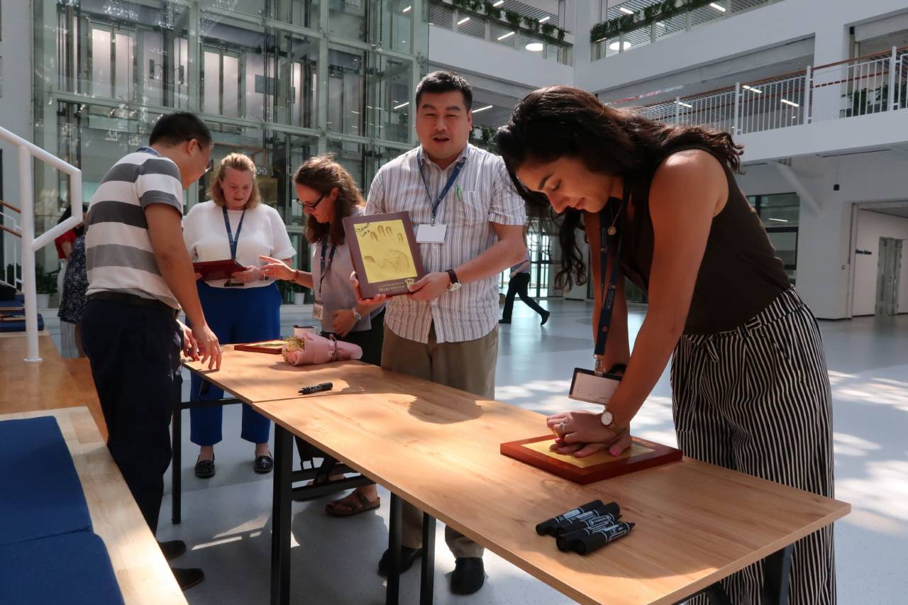 在9月10日教师节期间,该校还结合学校校史馆升级建设的契机,为在校外籍教师举办了一场拓印手模的活动,外籍老师们纷纷留下了自己的手印和签字,这些手模将被打造成一面手模墙悬挂在新装修好的校史馆中,一起伴随学校发展共同见证历史,以此表现校方对老师们过去一年的辛勤付出的认可与尊重。