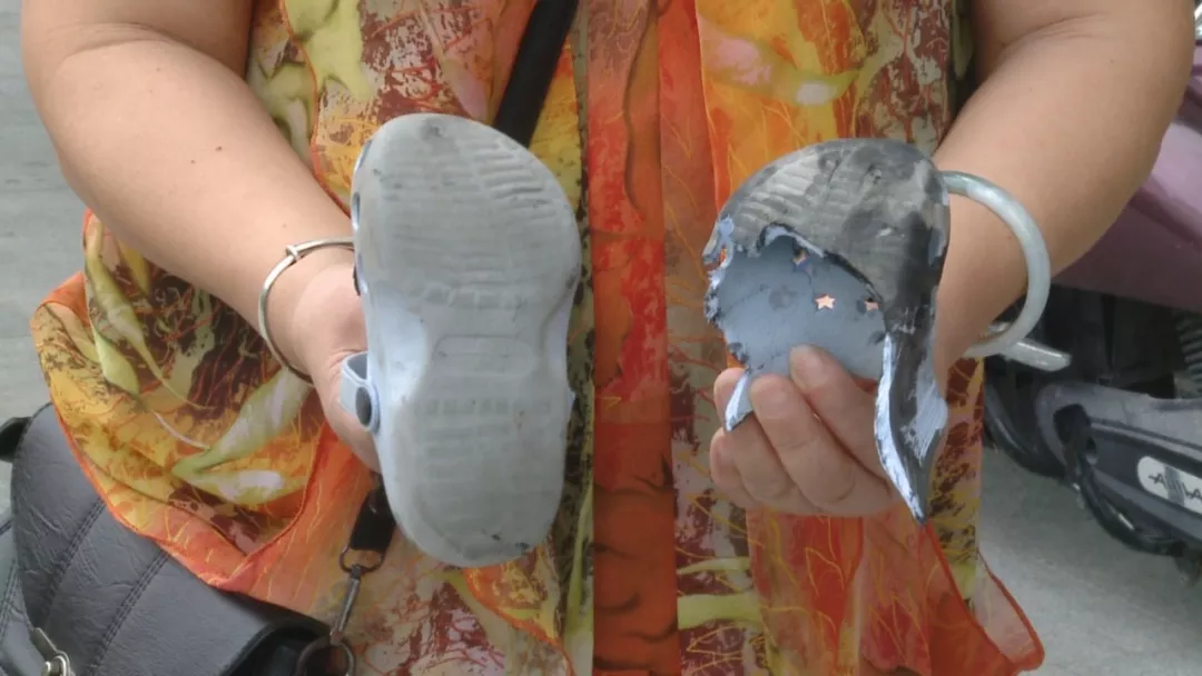 而除了洞洞鞋之外,我们栏目也曾报道过穿拖鞋乘梯造成的类似危险情况。