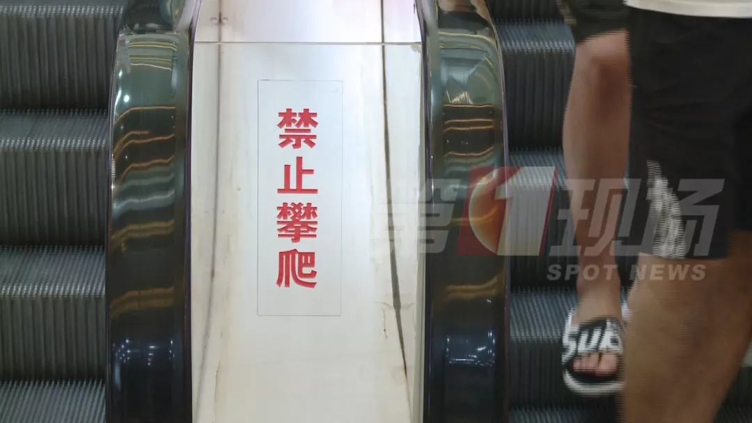 记者看到,这家商场已经在手扶电梯处,设置了一些“禁止攀爬”,“小孩必须拉住”的安全警示标志。