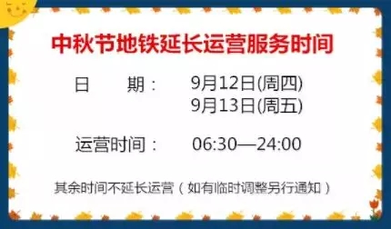 中秋节地铁将延长运营服务时间
