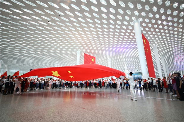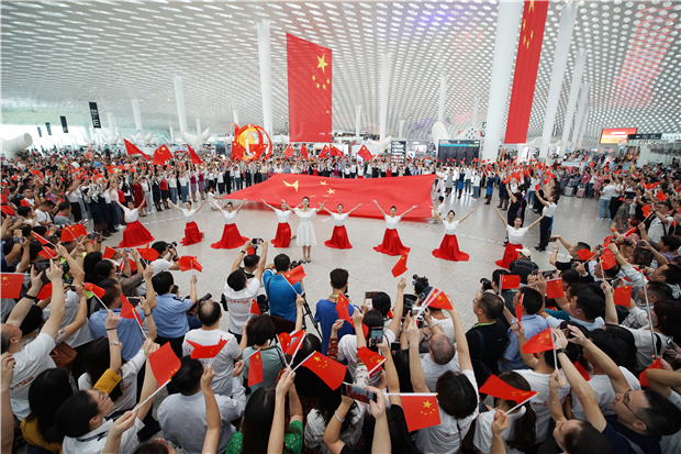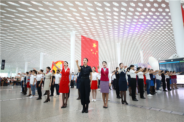 机场航站楼成“红色海洋” 他们以这种方式庆祝新中国成立70周年