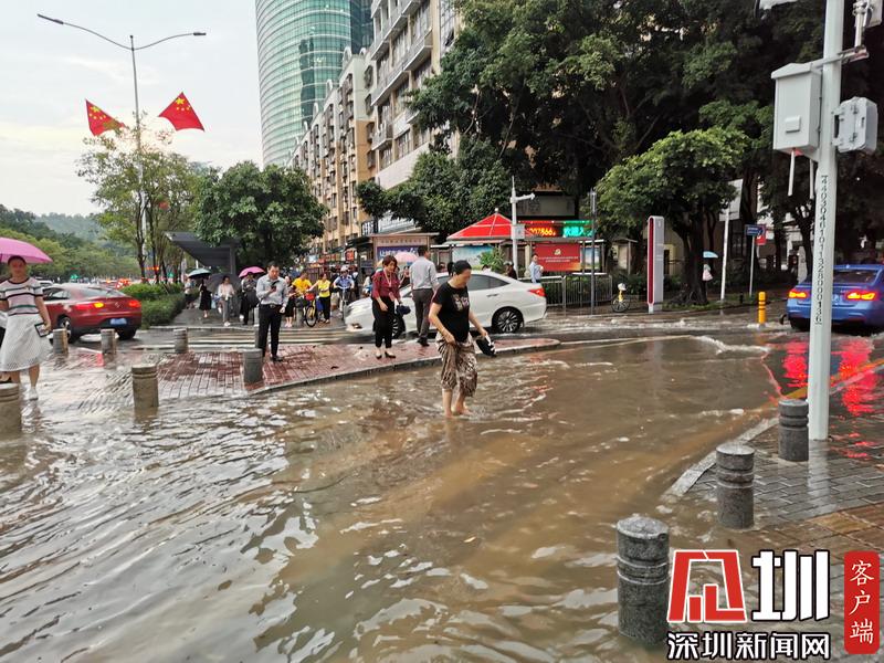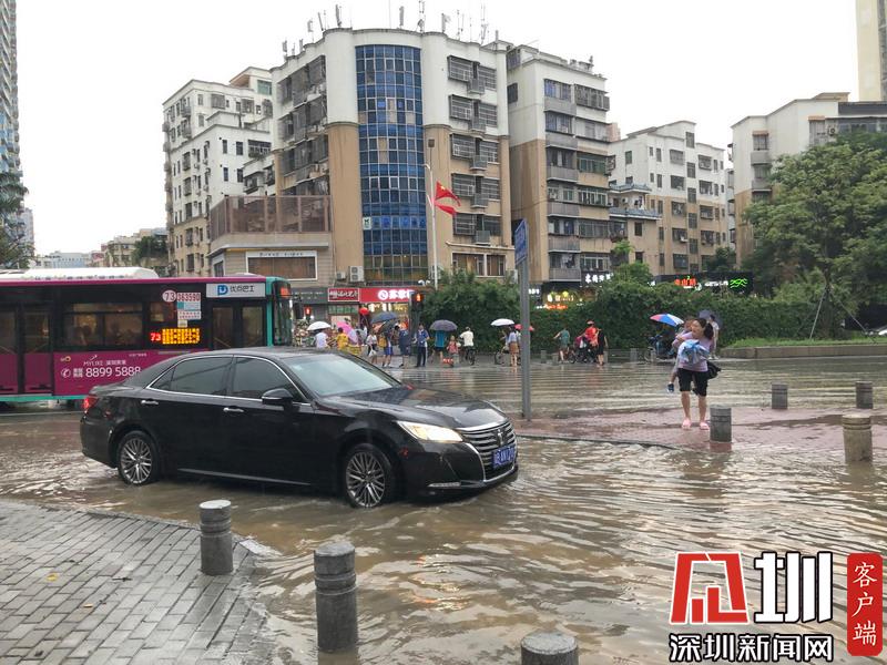暴雨过后,在福田区莲花路上开车如行舟。