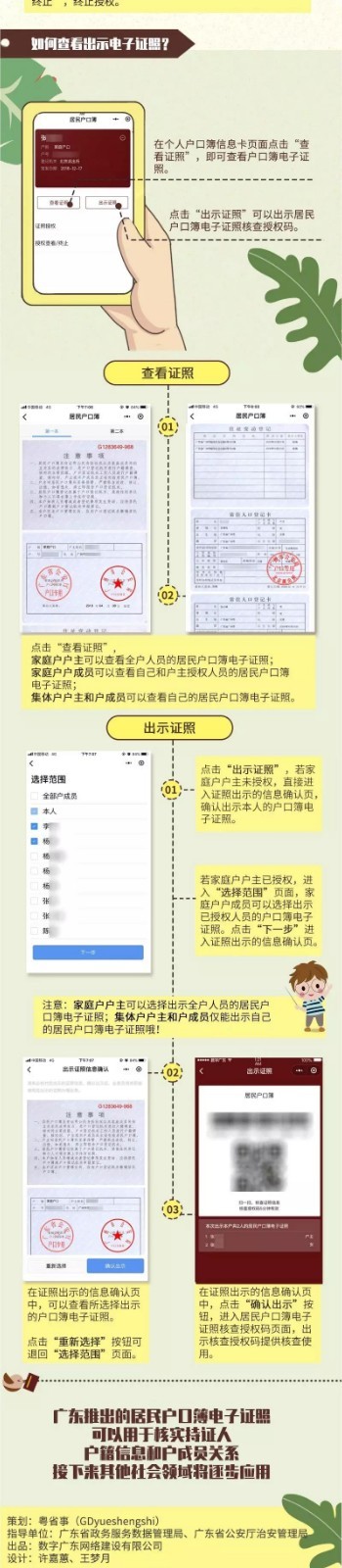 广东推出的居民户口簿电子证照可以用于核实持证人、户籍信息和户成员关系,接下来其他社会领域将逐步应用。