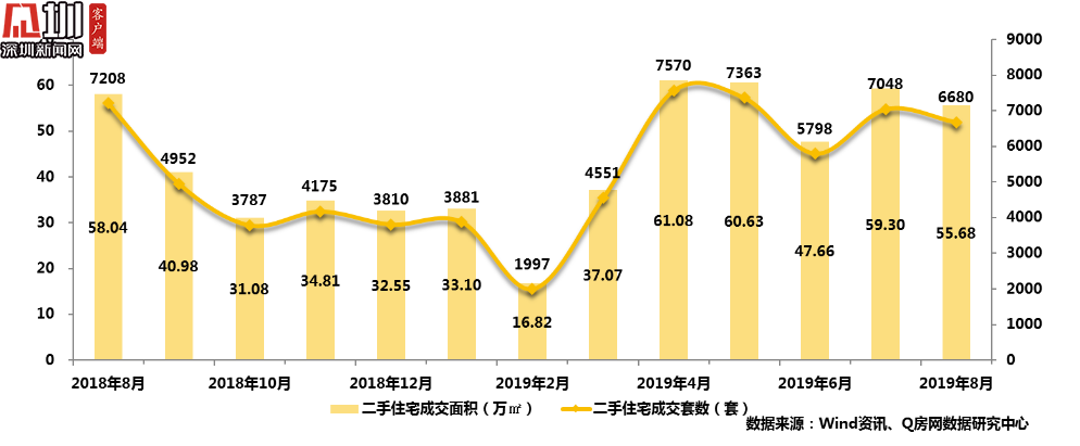 从深圳来看,8月一二手住宅成交均呈下降趋势。据Q房网数据研究中心统计,8月深圳一手住宅共成交3038套,环比下跌16.29%,同比下跌17.62%。二手住宅共成交6680套,环比下跌5.22%,同比下跌7.33%;成交均价55688元/㎡,整体量跌价涨。