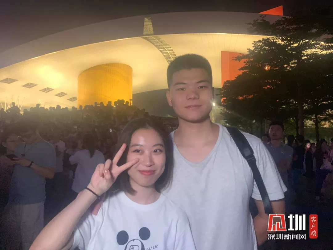 【福田区】就读于深职院的苏同学和魏同学今天也是第一次来看灯光秀,他们表示,此刻正是美好的时刻。