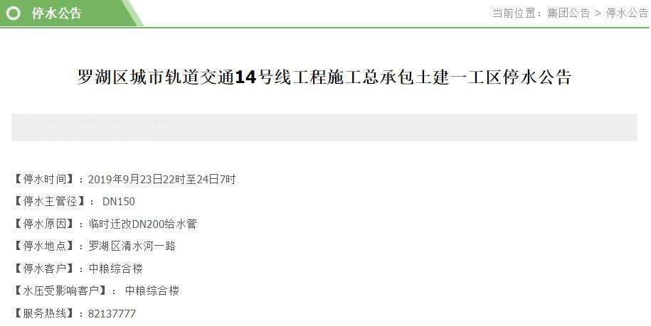 9月23-24日,福田南山罗湖多片区将停水,这些小区受影响