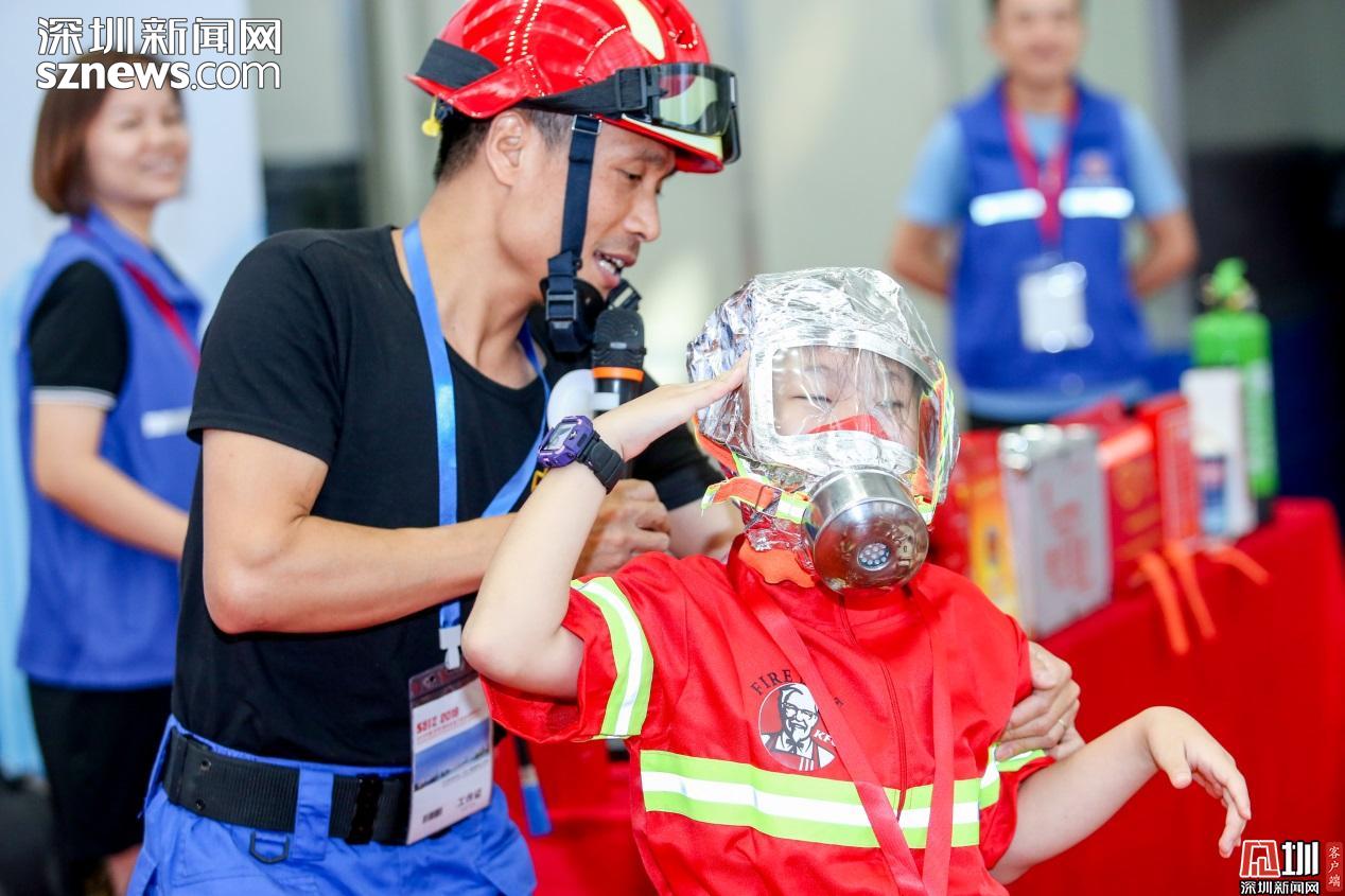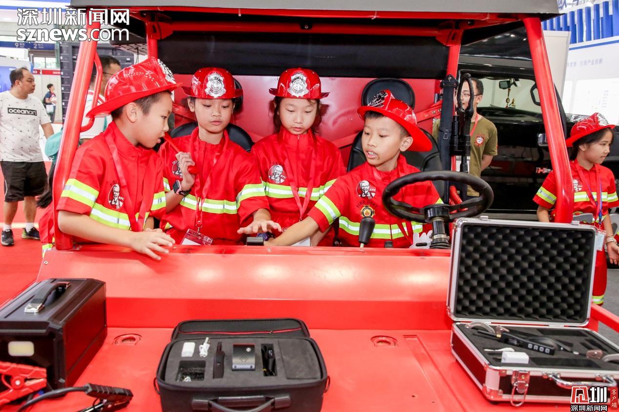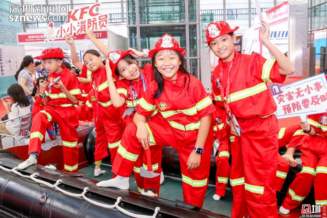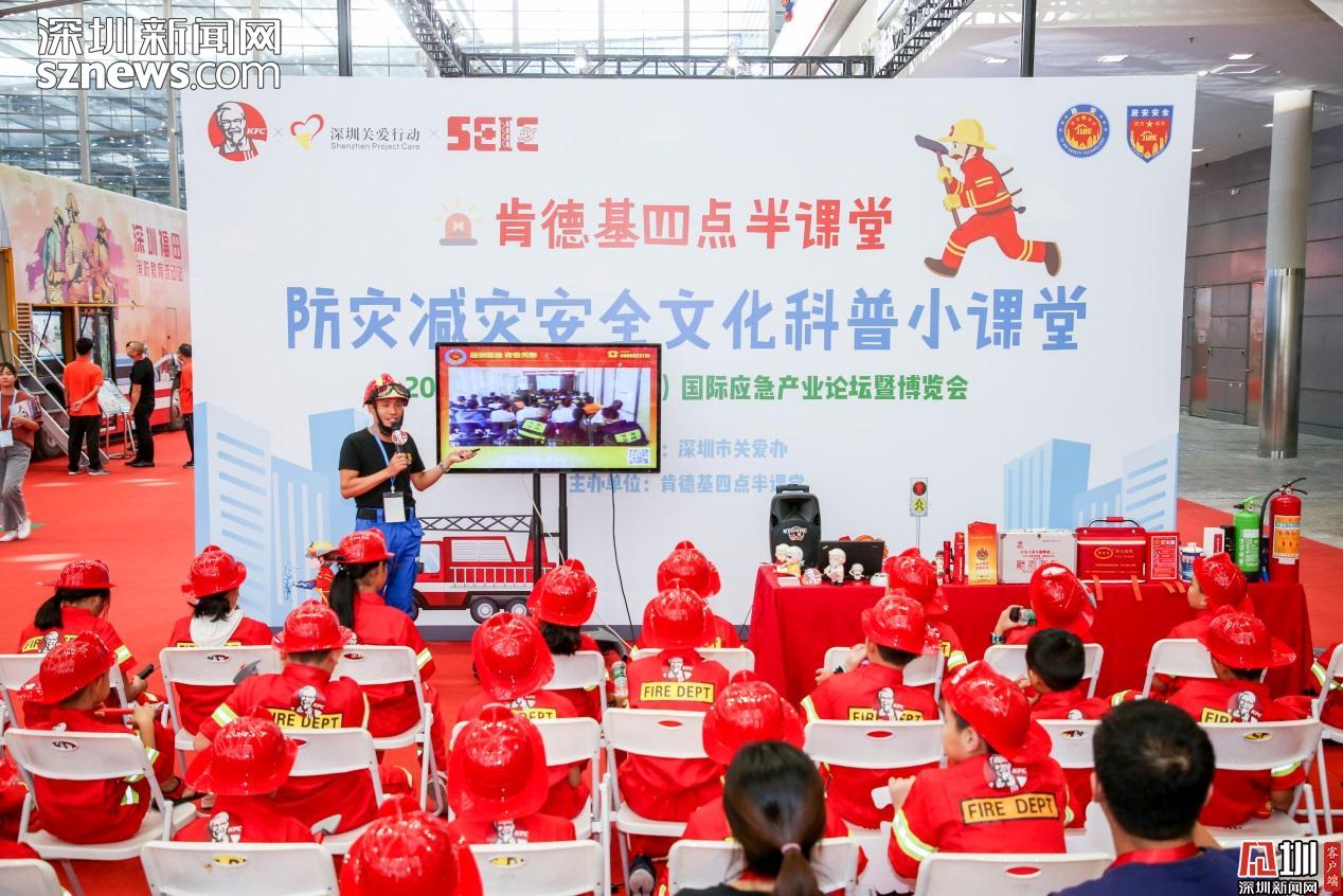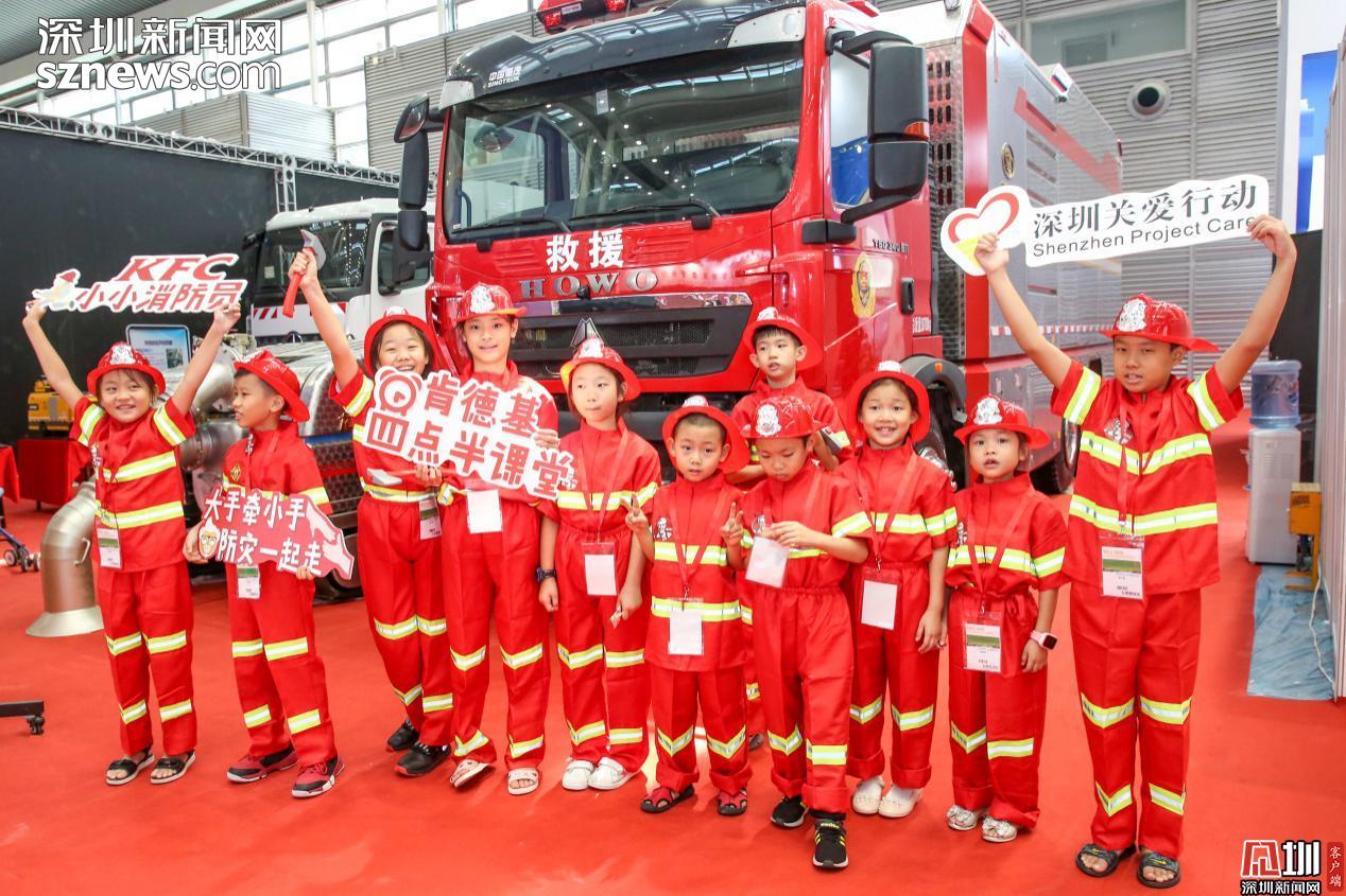 见圳客户端、深圳新闻网2019年9月23日讯(见圳客户端、深圳新闻网记者 陈彬)头戴消防安全帽,手持mini灭火器,身穿靓丽正红的消防服装,9月21日,在深圳会展中心的深圳国际应急博览会上,一群可爱的小小消防员们吸引了全场的目光。原来,这是“肯德基四点半防灾减灾科普小课堂”正在深圳国际应急博览会上举行。30名小朋友们装备齐全,神采奕奕地 cosplay了一把“小小消防员”。他们认真听消防教官的科普演讲,参观消防教育科普双层巴士,近距离感受消防车、应急无人机等专业的防灾救援高科技装备的硬核魅力……独特的消防体验让同学们十分兴奋。