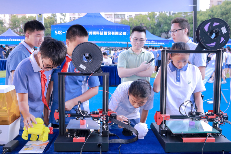 据了解,“礼赞共和国,智慧新生活”是今年全国科普日的主题。本次全国科普日宝安区活动分为航天科技装备、太空知识长廊、氢能转化实验、 VRAR活动体验、宝安区科普教育基地介绍等五个版块,呈现出航天科技与太空知识相结合的科普盛宴。除此之外,深圳市洲明科技股份有限公司带来了智慧路灯及节能系统的介绍;深圳市爱能特科技有限公司的3D打印让学生们大开眼界,想像的物品只要设计出来就能打印;韩端科技 (深圳)有限公司带来的机器人舞蹈挥舞着国旗震撼了全场……操场上、实验室里处处散发出着科技的魅力。