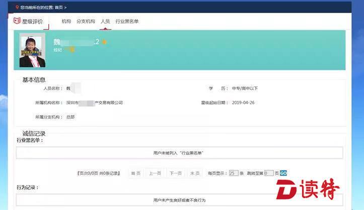 模块中涉及到中介机构和中介人员的星级评价,来自深圳市房地产中介协会(以下简称“深房中协”)与各大中介机构组成的专家委员的定期联合评定。无论是中介人员还是中介机构,都需从一星经数次评选提升至五星等级,越高星级的人员与机构,意味着更少的投诉信息与更加优良的诚信记录。目前上线的模块中,仅有大约10%的中介人员获得了五星认定。
