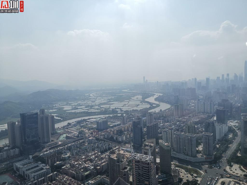 从地王观光•深港之窗看到深圳河另一边,是香港天水围。