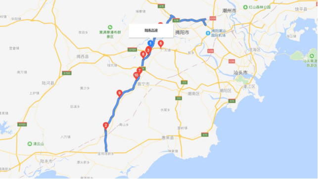 潮惠高速与惠莞高速相接,深圳车友可经博深高速-惠莞高速-潮惠高速前往潮州。相比于行驶深汕高速,全程少70余公里,节省约1个小时。